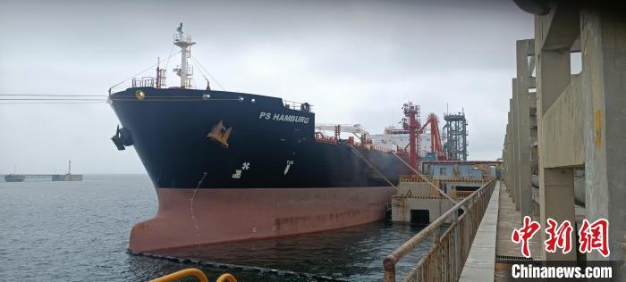 装载大庆石化4万吨0号柴油的“汉堡号”油轮。 大庆石化提供