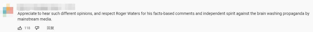 也有网友“感谢听到如此不同的意见,向罗杰 沃特斯基于事实的评论和不被主流媒体宣传洗脑的独立精神致敬。”
