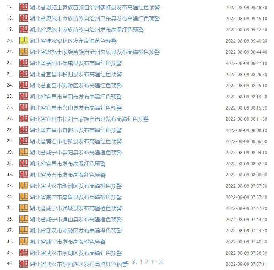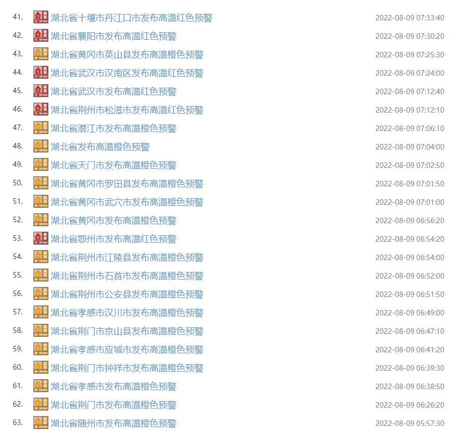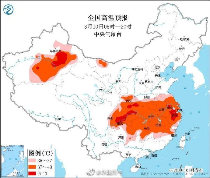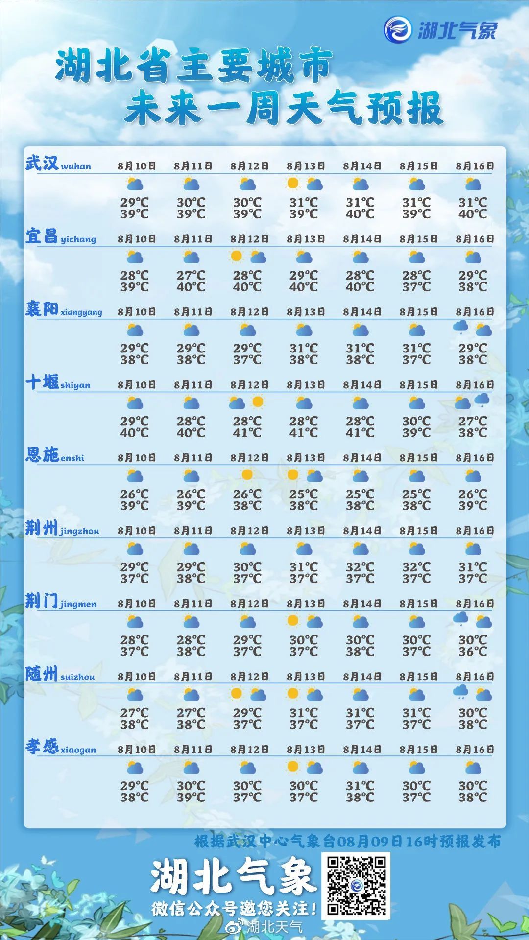 预计今天白天,十堰、襄阳西部、宜昌、武汉南部、黄石、鄂州最高气温将升至39~42℃,请注意防范!