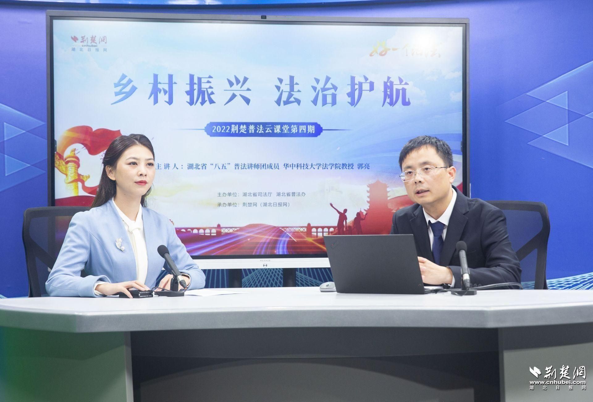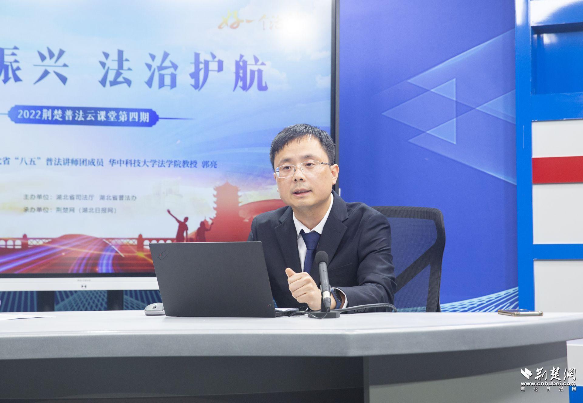 荆楚网(湖北日报网)讯(记者肖慧婷 实习生倪淑娅)“荆楚云课堂,名师来普法。”8月10日,由湖北省司法厅、湖北省普法办主办,荆楚网(湖北日报网)承办的“好一个活‘法’”——2022荆楚普法云课堂第四期直播课在荆楚网直播间开讲。湖北省“八五”普法讲师团成员、华中科技大学法学院教授郭亮以“法治乡村与基层善治”为主题进行授课,吸引了近55万网友观看。
