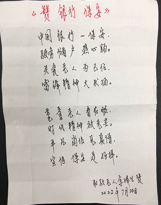 原来,该客户是中行冶钢支行附近居民,经常到该银行网点办理业务。保安师傅每次热情接待,并提醒老人注意脚下安全、预防财物丢失等风险提示。有一次,余师傅客户在他行的社保卡遗失,正在焦急之时,网点保安主动告知客户他行社保卡办理的网点方位,并拿出手机导航为老人指路,中行贴心服务让客户深感如家般温暖,遂以感谢信的方式为中国银行的服务质量“点赞”。