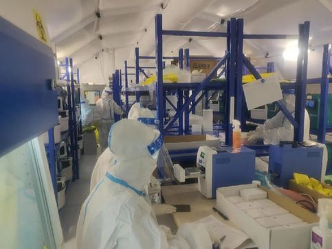 在一线开展核酸检测工作的上海恒瑞工作人员