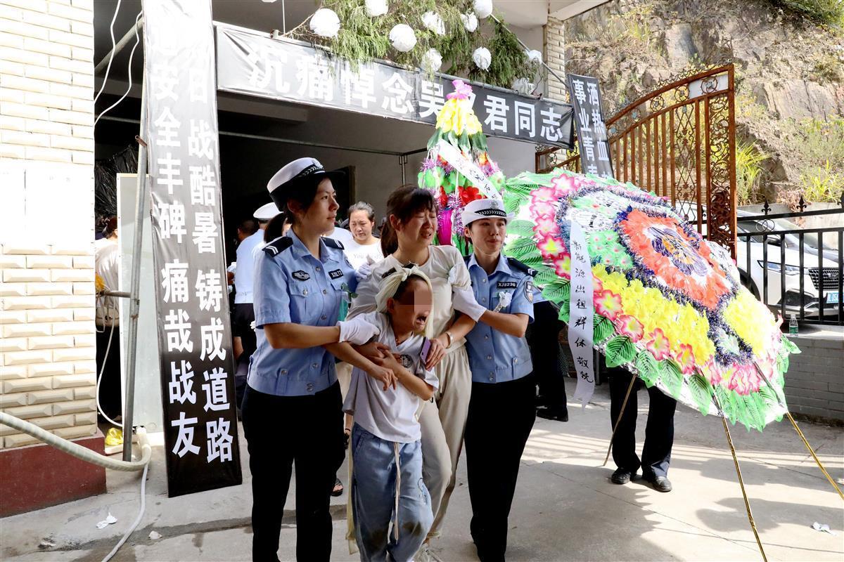 8月15日一早,该县公安机关为因公牺牲的36岁交管辅警吴义君,隆重举行遗体告别仪式。在通山县殡仪馆内,吴义君家属泣不成声。1000余名公安民辅警和社会各界群众代表参加悼念活动,众多市民自发组织送他们心目中的“老朋友”最后一程,大家泪湿眼眶,不舍离别。