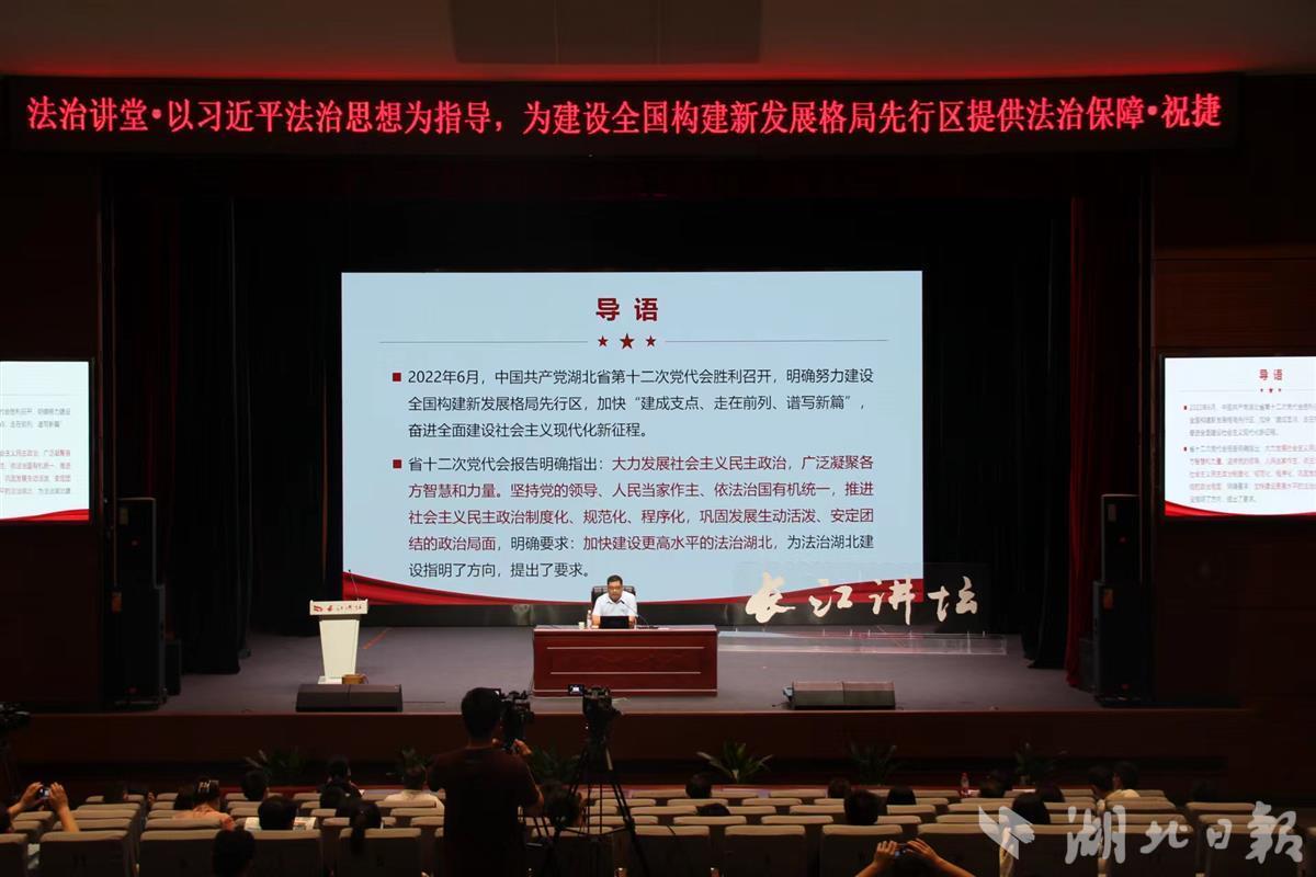 湖北日报讯(通讯员沈法治)为深入学习宣传贯彻习近平法治思想,推动《法治湖北建设规划(2021-2025年)》《湖北省法治政府建设实施方案(2021-2025年)》《湖北省法治社会建设实施方案(2021-2025年)》落实落地,8月16日,省委依法治省办会同省法学会、省图书馆,邀请武汉大学法学院副院长、武汉大学党内法规研究中心副主任祝捷作“以习近平法治思想为指导 为建设全国构建新发展格局先行区提供法治保障”专题讲座。