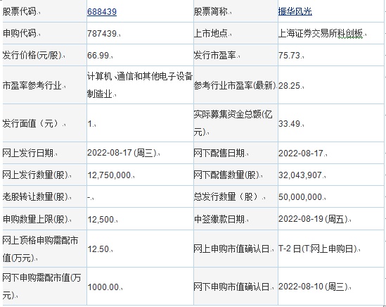 振华风光2022年8月16日披露的首次公开发行股票并在科创板上市发行公告显示,公司本次募投项目预计使用募集资金为120,045.76万元。按本次发行价格66.99元/股和5,000.00万股的新股发行数量计算,若本次发行成功,预计公司募集资金总额334,950.00万元,扣除发行费用约8,876.12万元(不含增值税)后,预计募集资金净额约为326,073.88万元。