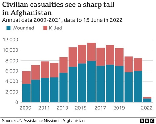 联合国阿富汗援助团的最新数据表明,阿富汗平民死伤人数在2022年出现断崖式下降。有分析认为,安全形势变化的关键在于塔利班自身角色的转变。