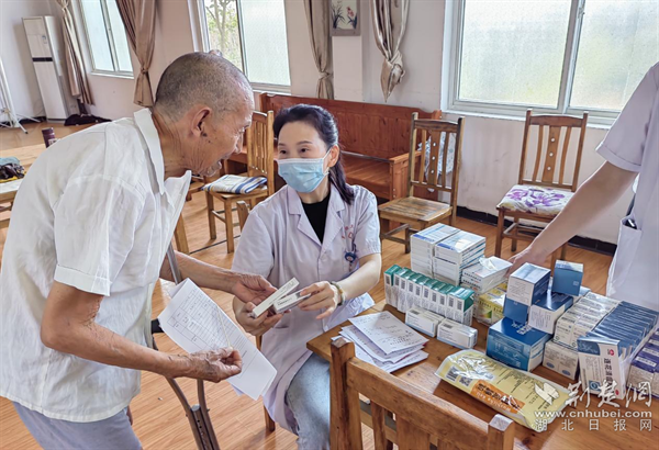 给老人配药。通讯员 供图