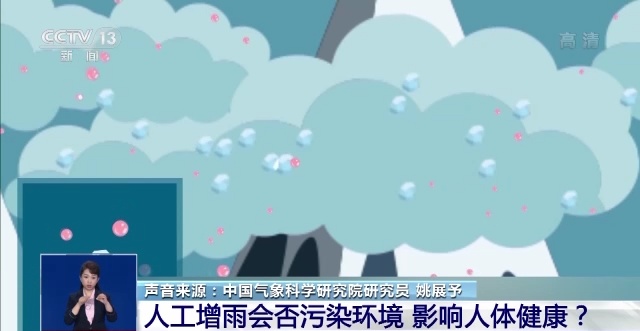 中国气象科学研究院研究员 姚展予:最常用的催化剂是碘化银,但是人工影响天气所播撒的碘化银浓度是极其微小的。世界卫生组织对饮用水、环境当中的银离子的含量有一个安全标准,每升水当中银离子的含量不大于0.05毫克。我们可以很负责任地告诉大家,经过人工影响天气以后,所使用的催化剂对环境和水应该是不会影响人体的,不会污染环境,因为浓度远远低于标准值至少是两个量级以上,在国外和国内都有检测的数据。