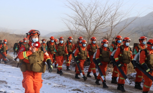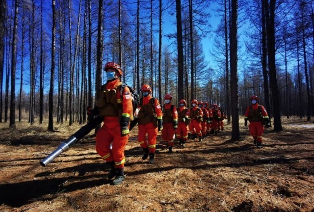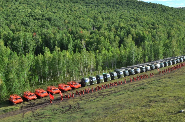 内蒙古大兴安岭森林消防支队正在行走的步伐