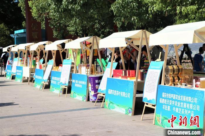 葡萄文化节会场现场,当地开设农特产品展区。 王雯秋 摄