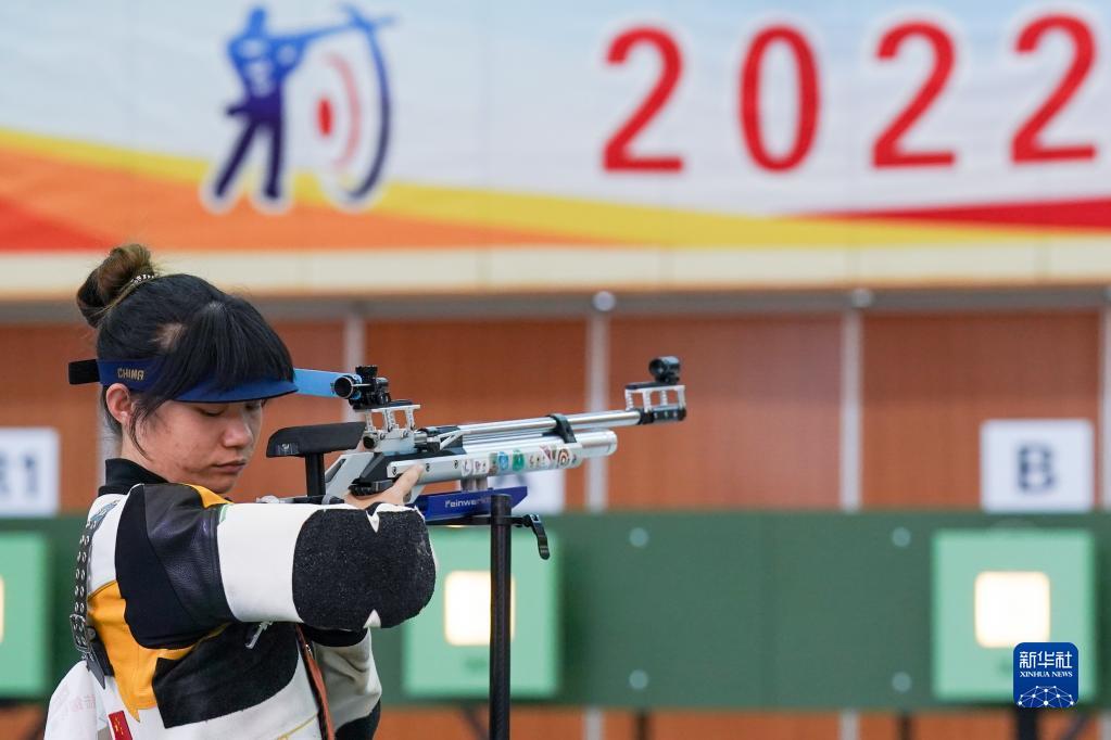当日,在江苏南京举行的2022年全国射击锦标赛(步、手枪项目)暨国家步、手枪射击队开罗世锦赛选拔赛第二阶段(第二场)女子10米气步枪选拔赛中,浙江选手黄雨婷最终以17比11战胜湖南选手刘汝璇,获得第一。