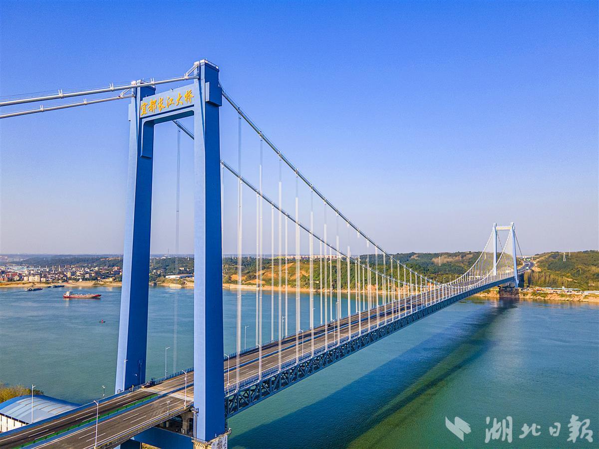 长江湖北段上,38座大桥迎风踏浪,桥上车辆川流不息,带着信息流、资金流来来往往,见证着湖北发展的非凡岁月。