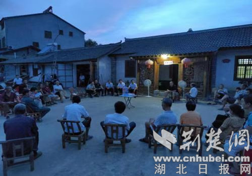 荆楚网(湖北日报网)讯(通讯员 赵子明)8月22日晚7:30,夜幕下的钟祥市客店镇南庄村对节树旁热闹非凡。没有主席台、讲话稿,也没有办公桌,镇村党员干部和村民群众促膝谈心,围绕“共同缔造”话题,讨论的热火朝天。村民们立足本村实际,结合自身需求,畅谈对村庄文化建设、环境卫生整治、美丽乡村建设等工作的意见和建议,得到镇村领导的积极回应。