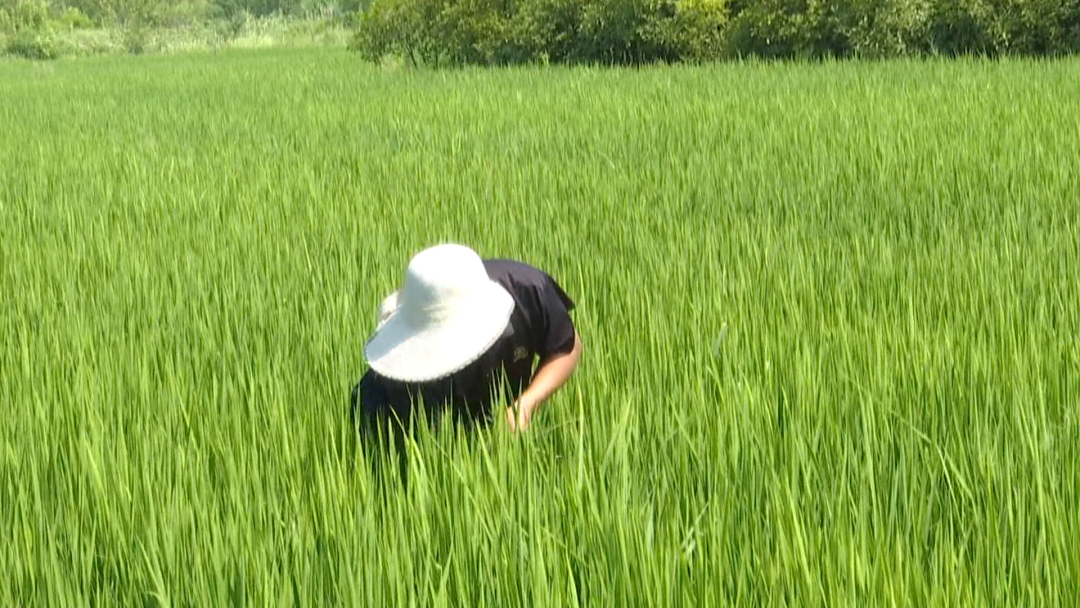 在孝昌县邹岗镇群爱村,村民付银元正在查看自家的水稻,由于近期高温少雨,导致在水稻生长阶段结实率降低,从而减产。孝昌县邹岗镇群爱村村民付银元说:“高温对这个谷还是影响太大了,瘪谷太多了。”
