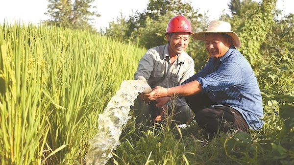 国网湖北电力员工在京山市坪坝镇东川村保障抗旱可靠供电。