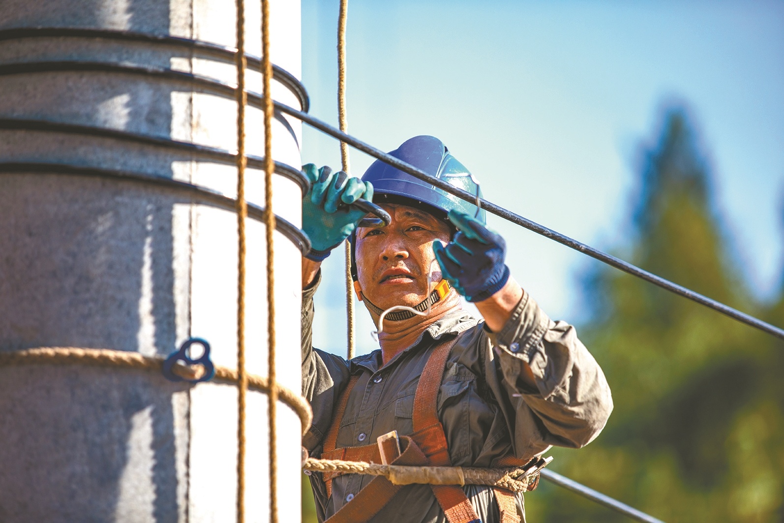 7月24日凌晨1时30分,国网鄂州供电公司检修人员许淑安背上工具包,在漆黑的夜色中爬上60余米高的220千伏鄂光二回线11号铁塔,检修处理A相线路过热隐患点,确保线路健康运行。