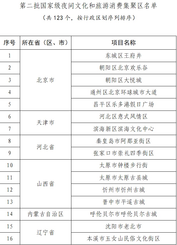 央视网消息:文化和旅游部网站8月25日公布第二批国家级夜间文化和旅游消费集聚区名单。