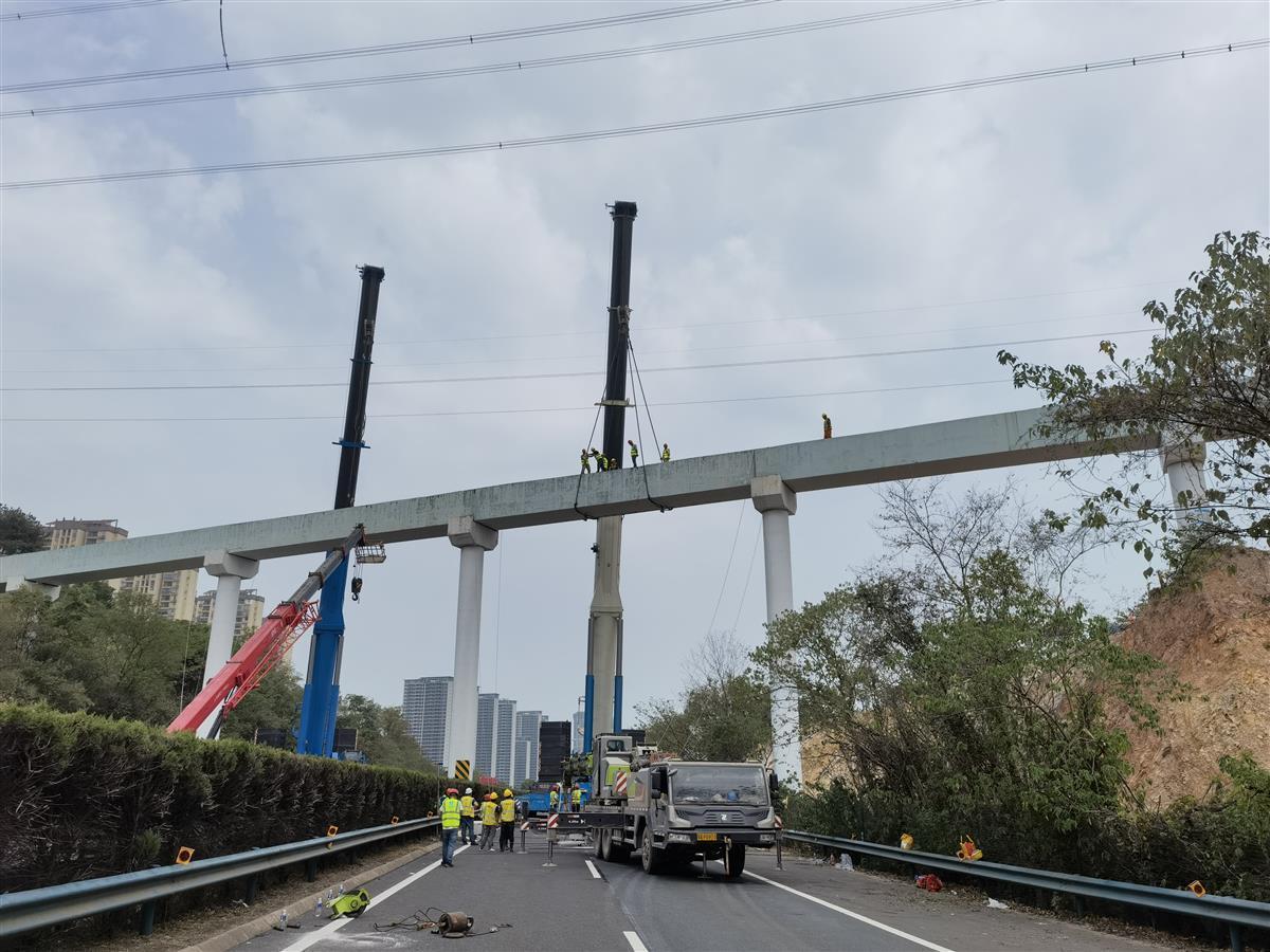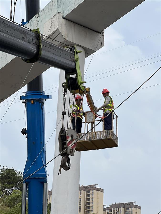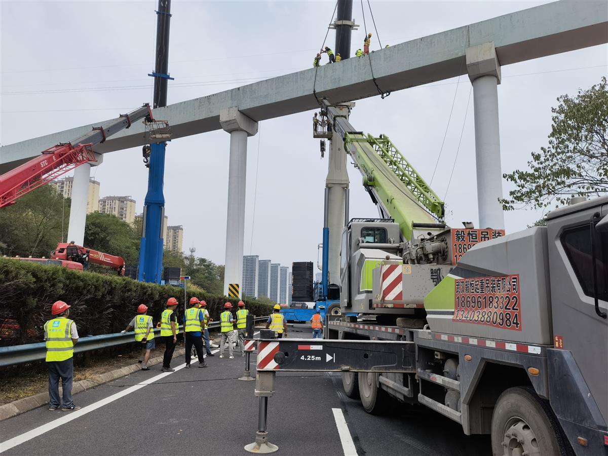 “看,这就是绳锯,为减少对居民的影响,而采用传统绳锯切割方式。”在高新大道跨线立交桥,烈日下的沈典栋衬衣早已湿透。顺着他指着的方向,湖北日报全媒记者看到,一圈长约40米、“长”满坚硬金刚石的绳索,缠绕在箱梁上,在600吨的吊机配合下,快速切割箱梁。约1小时后,这条坚硬的绳锯将1.2米厚的箱梁切割成25米长的“豆腐块”,然后由吊车吊运至空地。