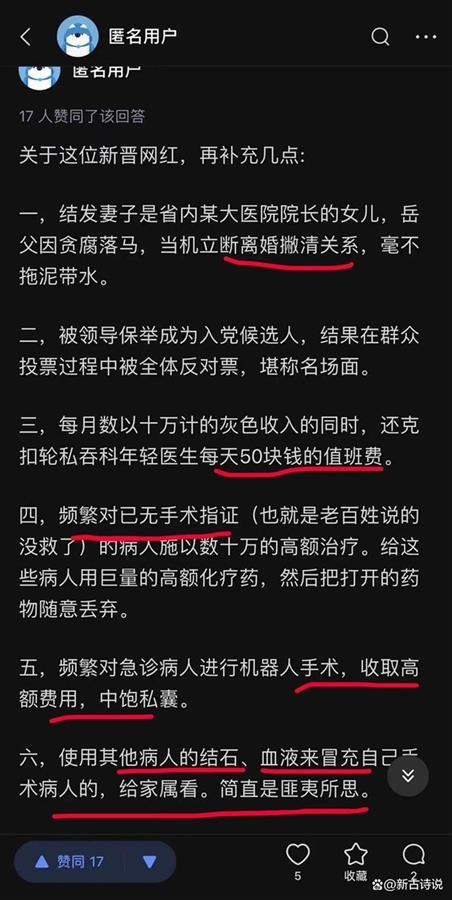 那么,是何等盘根错节的缘由,让这样一个无良医生在医院横行多年,纵使口碑不佳,劣迹斑斑,依然一路晋升,无所顾忌?他究竟是否如网上所言,有显赫的家庭背景?他那些让人头皮发麻的违规操作,在院内有没有同伙和保护伞?他屡次遭遇举报却依然屹立不倒,医院纪检监督为何彻底失灵?相信上级纪检监察部门介入后,一切都会有清晰明了的答案。