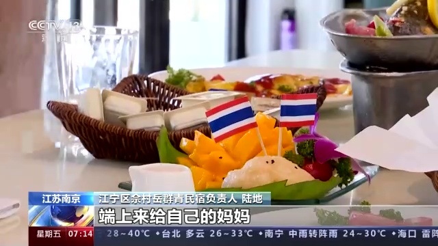 江宁区东山街道佘村社区党总支副书记 朱蓉:近两年,我们发现很多人也是喜欢这种乡村游,村子里面也有很多闲置的集体资产、集体房屋,以及我们老百姓自己闲置的一些房屋,我们就考虑是不是拿出来做点民宿。游客到我们佘村来,玩累了之后,也可以住下来,深度地体验我们佘村的乡土人情,从而增加我们老百姓的一点经济收入。
