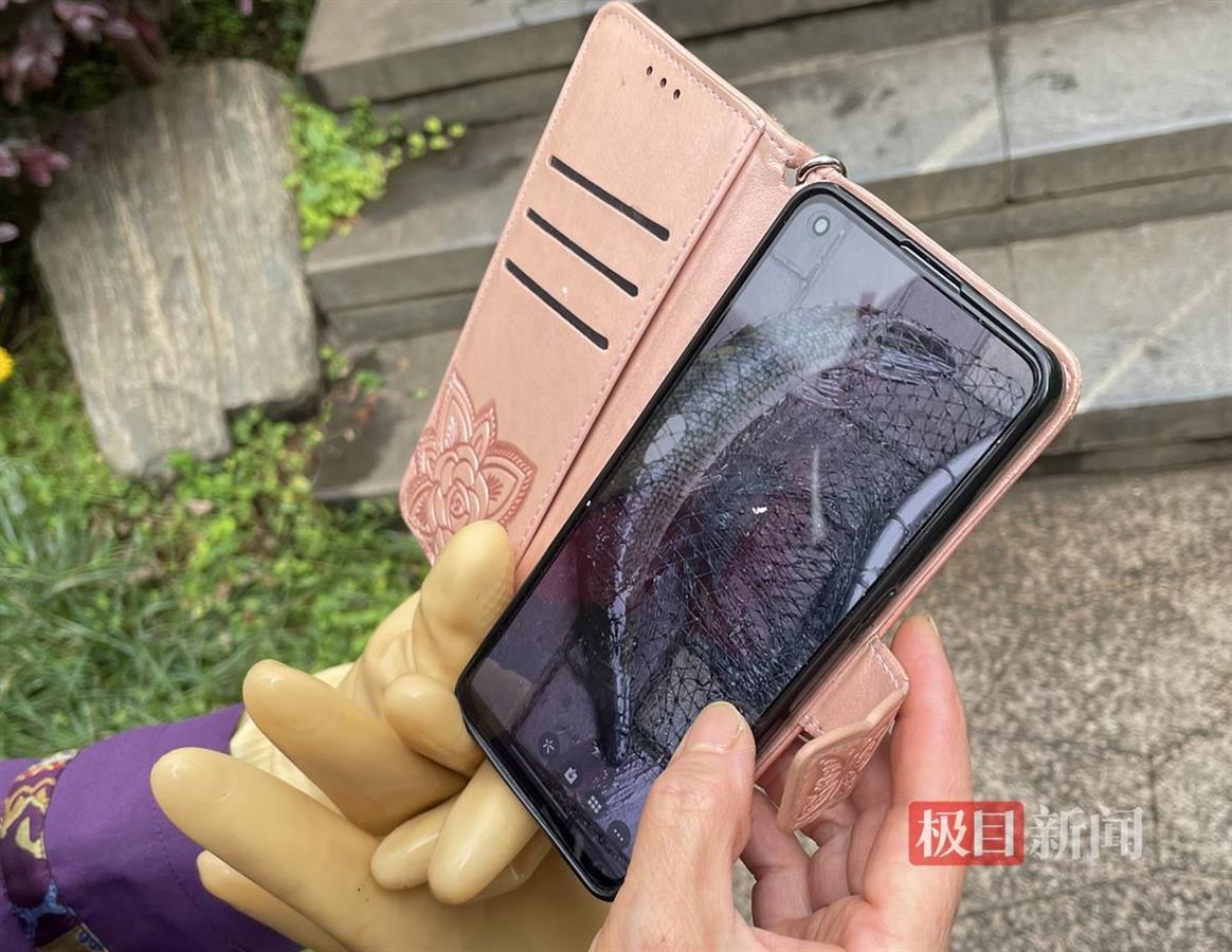 物业清洁人员向记者展示抓捕到的鳄雀鳝(来源:记者实拍)