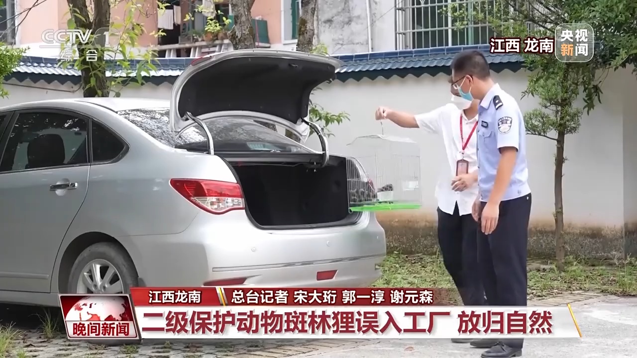 江西龙南:二级保护动物斑林狸误入工厂 放归自然