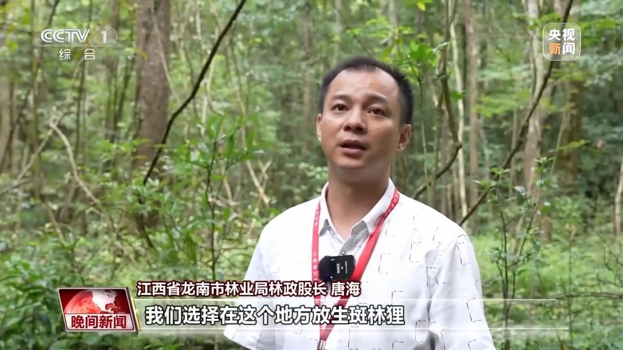 江西省龙南市林业局林政股长 唐海:我们选择在这个地方放生斑林狸,首先它是核心保护区,人为活动少,对它的生活习性影响也更小,其次,这里靠近水源,更能保证他的食物来源。