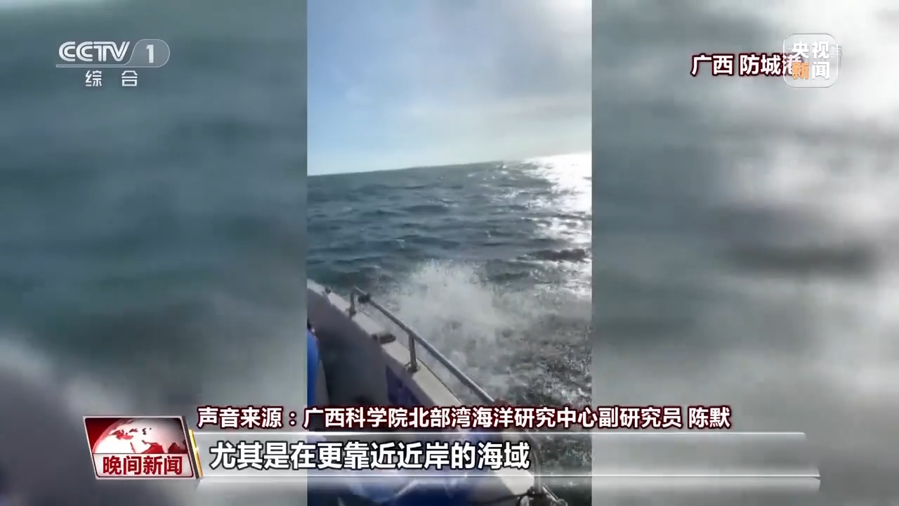 广西科学院北部湾海洋研究中心副研究员 陈默:我们对于在涠洲岛和周边海域以外的地方,尤其是在更靠近近岸的海域看到布氏鲸的活动都是非常兴奋的,因为这可以间接地说明,我国近海的渔业资源越来越丰富了,包括布氏鲸这样的海洋食物链顶端的生物都来这里捕食。