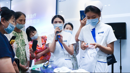 在门诊治疗实践操作环节,由门诊部护士长向小红为现场学员示范了干眼SPA的四个治疗步骤,并带教现场学员如何现场进行操作,同时,向护士长特别强调了医护人员在给病人治疗期间规范操作的重要性。