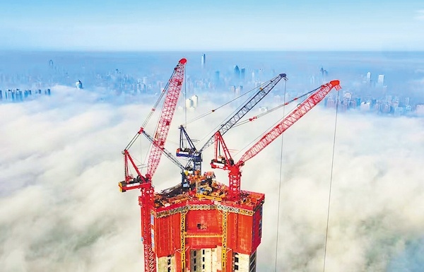 武汉绿地中心项目建设中“空中造楼机”上的塔吊,现存放于长安设备公司。 (本报资料图片)
