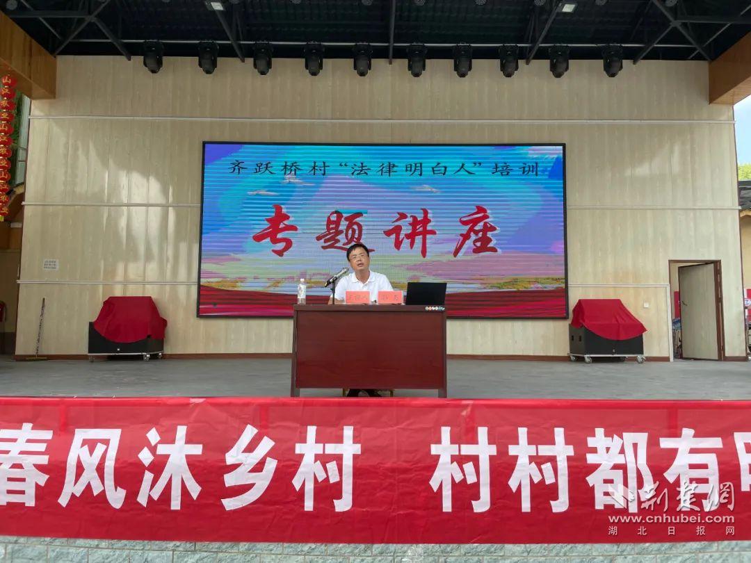 荆楚网(湖北日报网)讯 (记者肖慧婷 实习生樊佳琦 通讯员李佳)为推进乡村“法律明白人”培训工作,助力美丽法治乡村建设,8月24日,利川市汪营镇齐跃桥村举行“法治春风沐乡村 村村都有明白人”专题法治讲座活动,湖北省“八五”普法讲师团成员、华中科技大学法学院教授郭亮应邀授课,把法治课堂搬到乡村。
