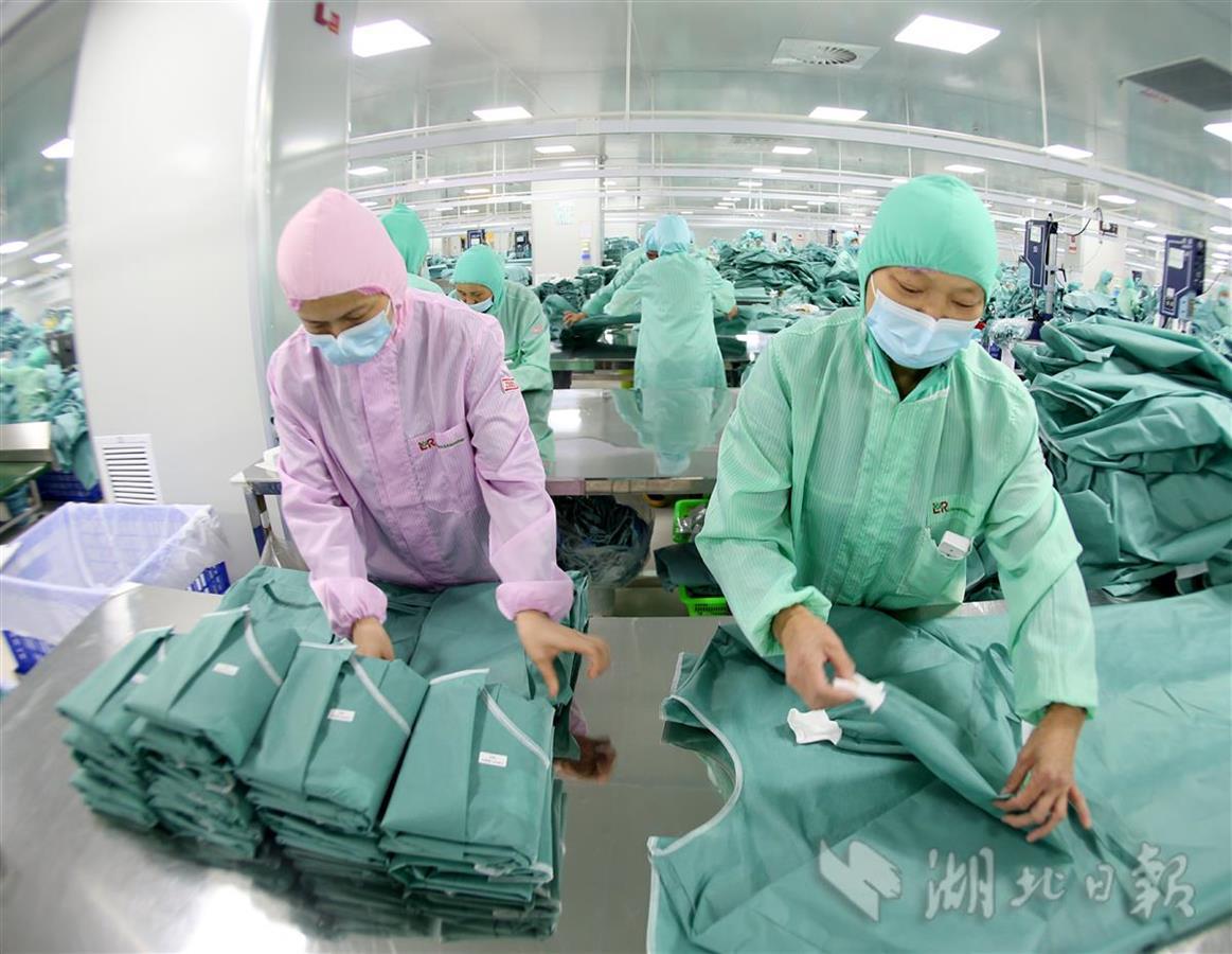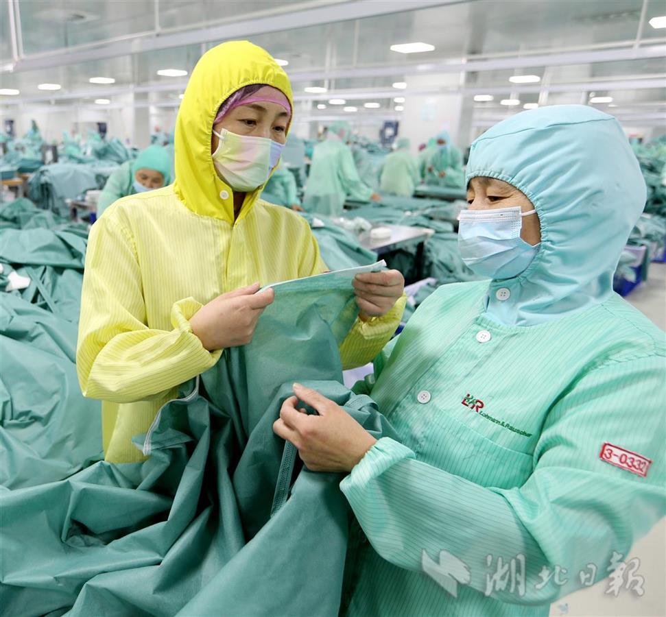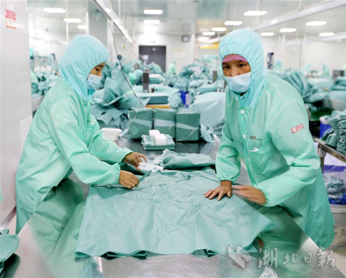 8月31日,洛曼劳仕(湖北)医疗用品有限公司员工在精心检验出口产品。该公司专注研发生产无纺布木浆、手术衣、医用绷带等医疗用品,产品通过德国TUV认证、欧盟CE质量体系认证。今年生产订单排满,4亿元订单生产出口直销捷克、丹麦、德国、法国、奥地利等欧盟市场,同比增长10%。 (湖北日报全媒记者 张鸿 通讯员 方俊 李梦瑶 摄)