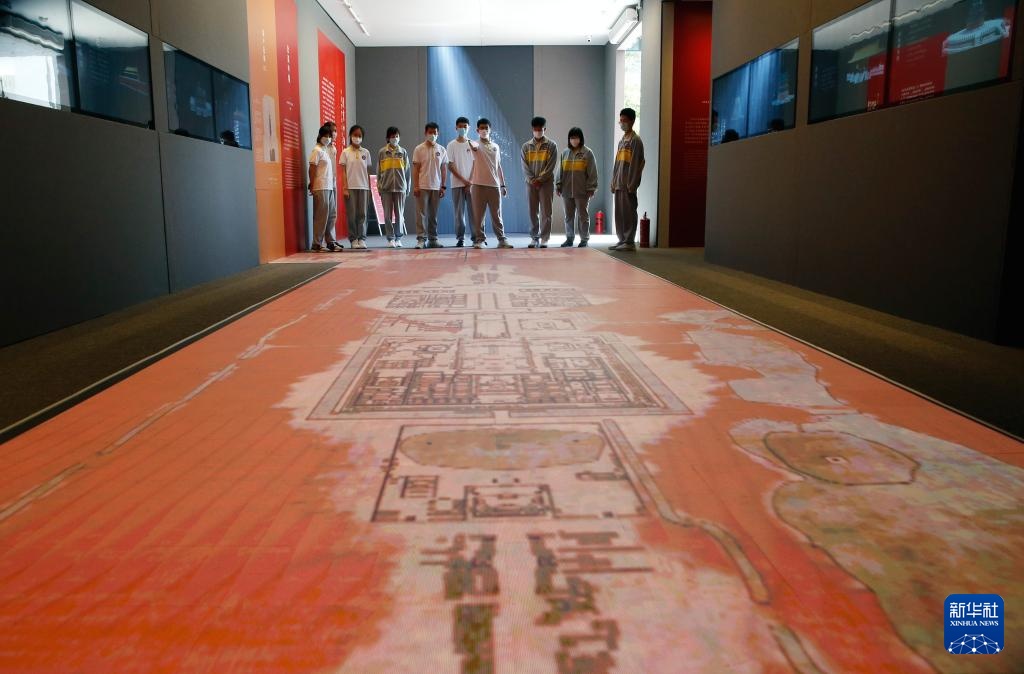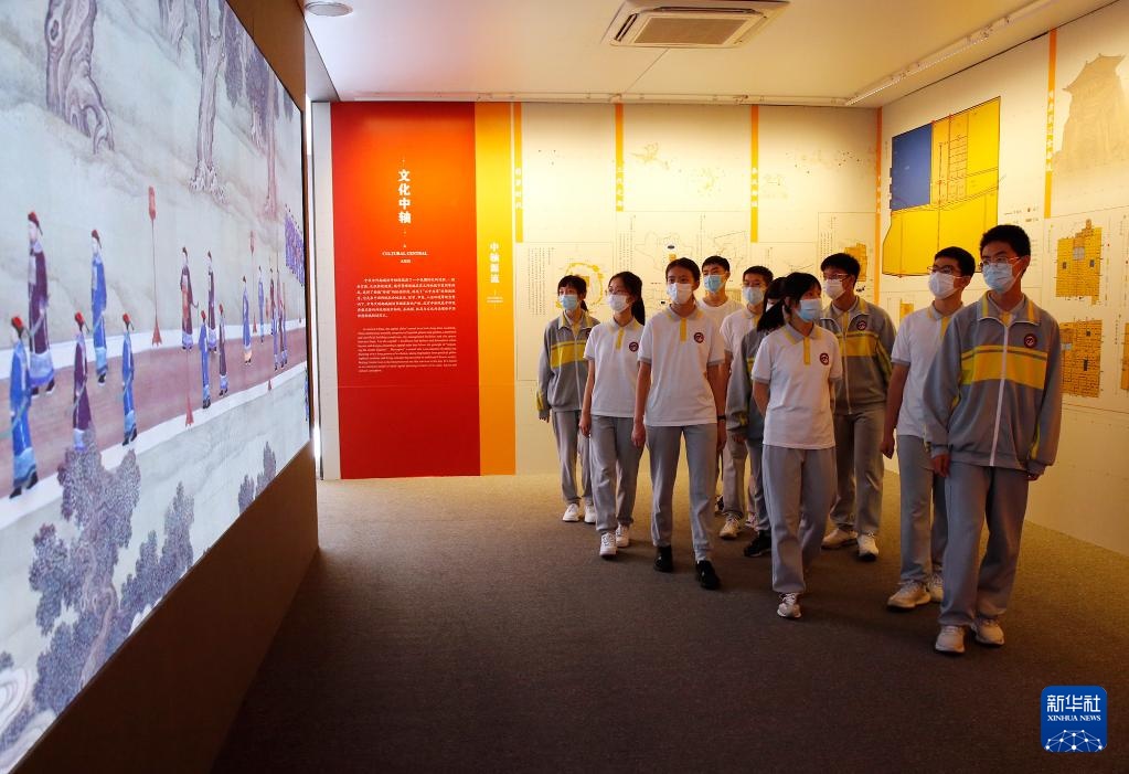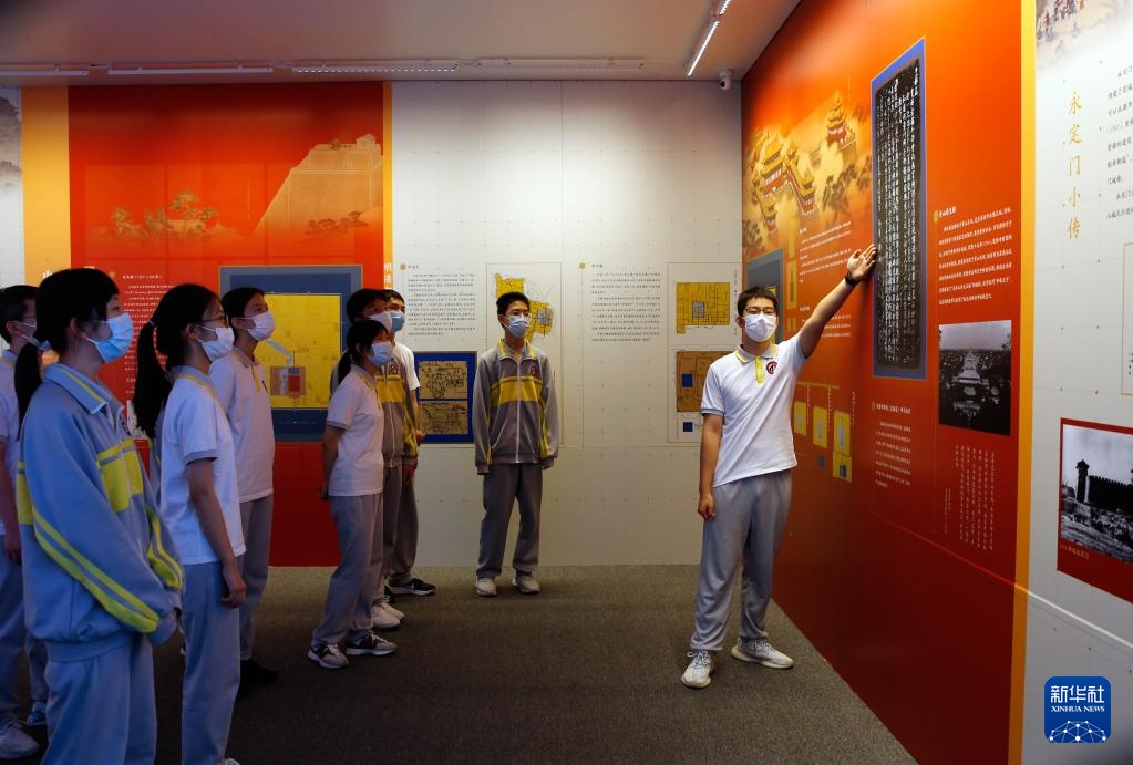 9月1日,北京二中学生在参观北京中轴线主题展览。新华社发(周良 摄)