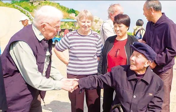 2019年10月20日,“里斯本丸”号英军战俘后人在舟山向当年参与救援的渔民林阿根(已故)老人表示感谢。(受访者供图)