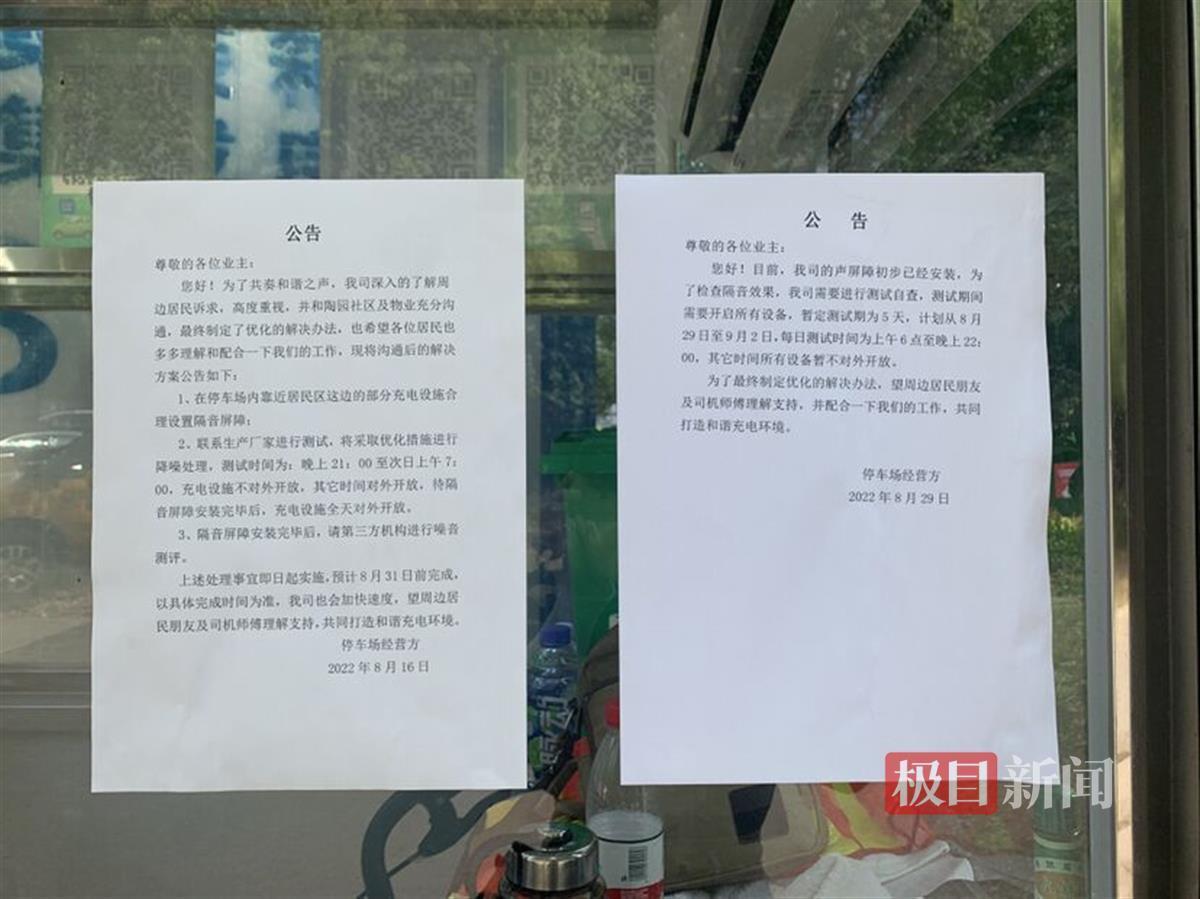 记者还注意到在停车场入口的门岗玻璃上,张贴了一张停车场经营方的公告。内容为隔音屏障已经安装,计划从8月29日至9月2日,开启全部设备进行测试,时间为上午6点至晚上10点,其它时间所有设备不对外开放。