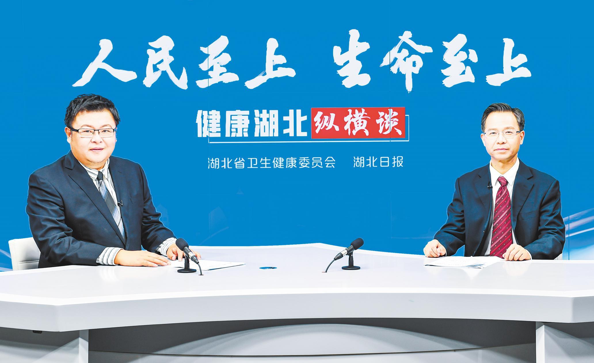 8月18日,襄阳市政协副主席、市卫生健康委员会主任李少平(右)做客湖北日报健康湖北纵横谈。 (湖北日报全媒记者 朱熙勇 摄)