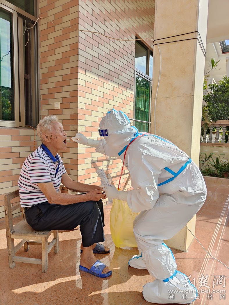转战乐东后,孝感市第一人民医院援琼医疗队员们迅速调整状态,来到高风险区利国镇,开展上门入户、单人单管核酸采样工作,全力以赴投入到新的战场中。
