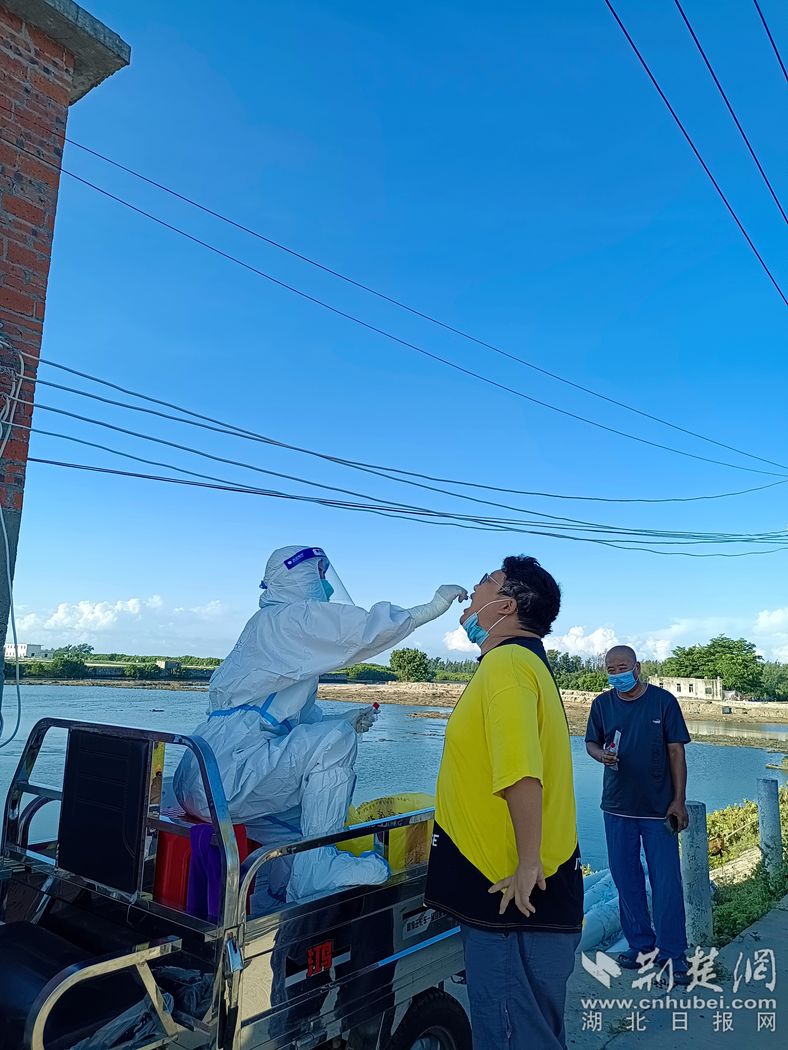 暑气逼人催人退,台风卷雨裹人停,楼高梯长步步难,小区万户层层踏。大家还克服思乡心切、蚊虫叮咬、语言不通、饮食不惯等诸多困难,在万宁市的万城镇、东澳镇、和乐镇、北大镇、龙滚镇等多个高风险区,“大白们”走街串巷、进村入户,用汗水丈量脚步,为当地群众采集核酸。