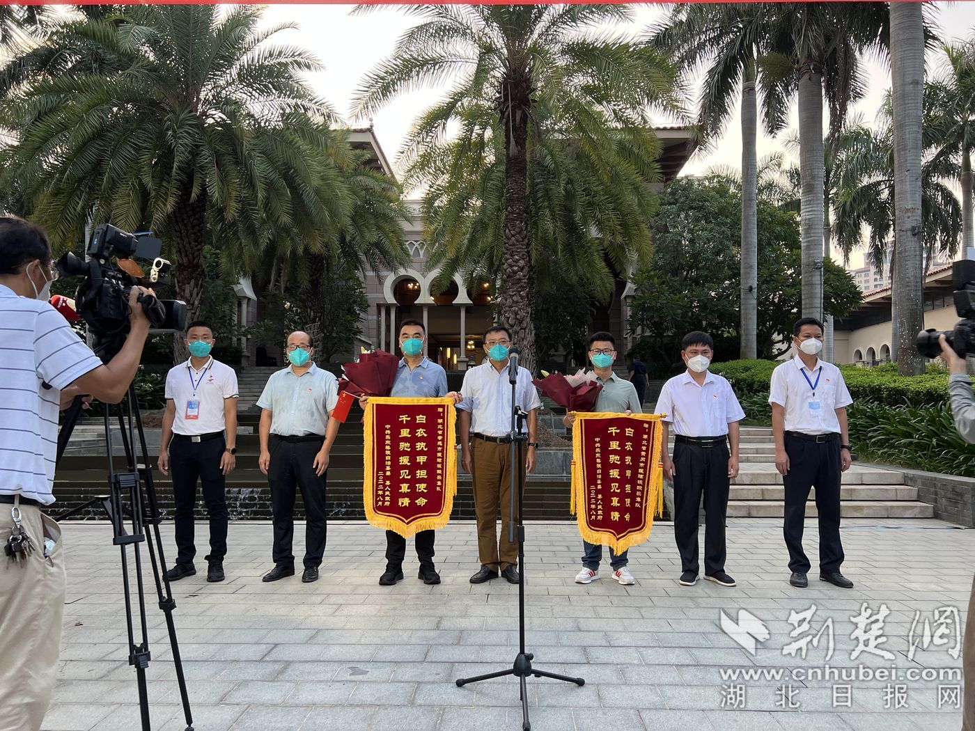 经过20余天奋战,万宁市连续6日无新增社会面感染者,经专家组评估,各项指标及工作符合相关要求,实现高质量社会面清零目标。原定三天后返程湖北,8月28日却突然接到紧急通知,孝感市援琼医疗队需要转战乐东黎族自治县继续开展工作。疫情就是命令,新冠病毒“大敌”当前,只要党和人民有需要,全体医疗队员都义不容辞。“这份风雨同舟、守望相助的深情厚谊,万宁人民永远铭记于心。”8月29日,在湖北支援万宁医疗队送别仪式上,万宁市委书记盖文启说道。
