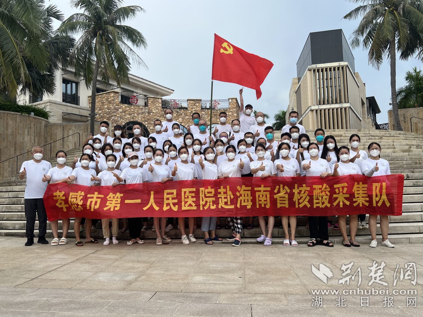 8月初,海南新冠肺炎疫情形势严峻复杂。8月6日,孝感市第一人民医院紧急接令、迅速行动、认真组织、连夜组队,7日下午,孝感市第一人民医院纪委书记王用文带队52名“战士”们逆行出发,抵达海南省万宁市开展核酸采样工作。