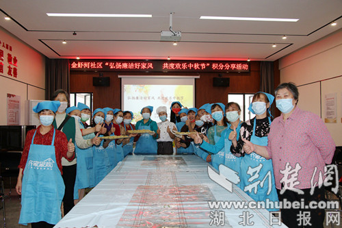 荆楚网(湖北日报网)讯(通讯员 罗晓菊、朱海航)为进一步丰富辖区居民生活,弘扬中华民族优秀传统节日文化,推进“美好环境与幸福生活共同缔造”活动深入开展,传承优良家风,树立清廉的节日新风。9月1日下午,荆门市东宝区龙泉街道金虾河社区开展“弘扬廉洁好家风 共度欢乐中秋节”主题活动。