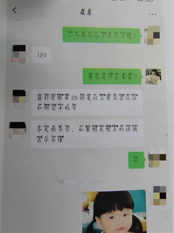 发展多名下线做起“中间商”,刚开始的几天,他还有些担心,但尝到“甜头”后,他的“胃口”越来越大,继而摇身一变成为“中间商”,开始以每天60元至80元的“租借费”拉“下家”出租微信账号,并从中赚取每人40元至60元不等的差价,做起了代理“生意”。