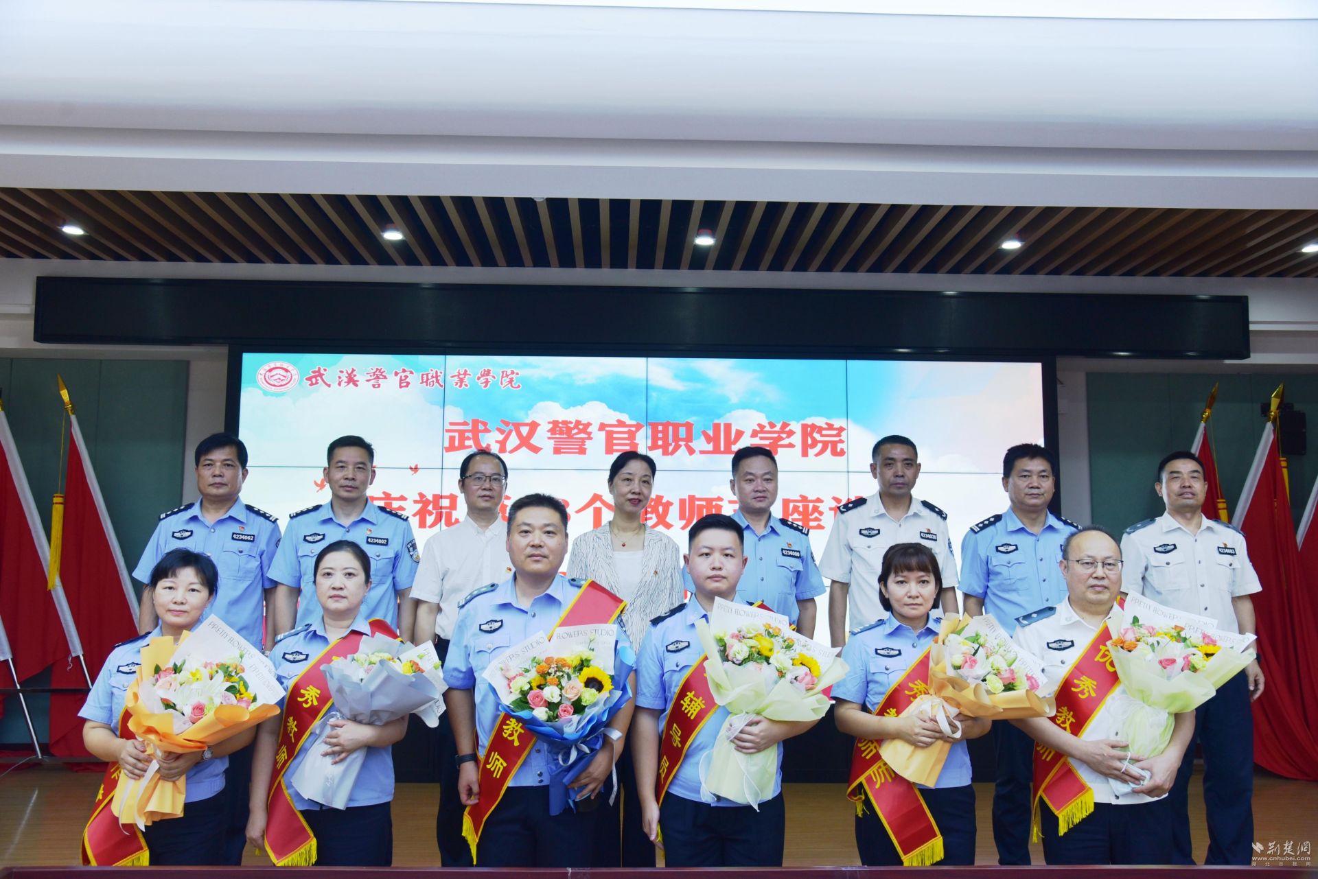 领导与优秀教师代表合影。陈昱含 摄