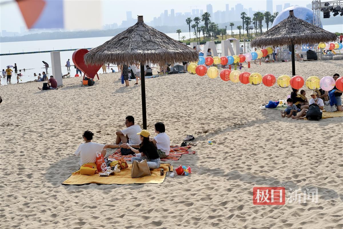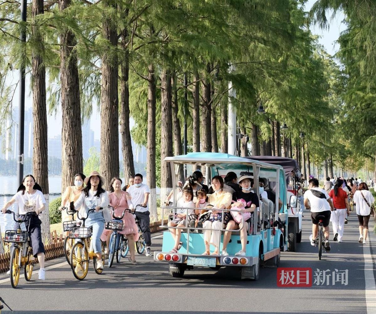 极目新闻记者在东湖看到,许多游客和刘女士一样,以家庭为单位出游,有的在磨山楚城进行亲子手作,有的在湖面上划着“月亮船”,有的在沙滩浴场的凉亭下休憩,有的在绿道上悠闲骑行享受慢时光……无论是成年人还是小朋友,他们都能找到合适自己的游玩方式,享受假日欢聚的美好时光。