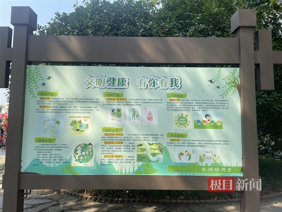 在武汉东湖,中秋假期许多家长以身作则,帮助孩子从小树立起文明旅游的意识,在欣赏东湖之美的同时,游客们也在一言一行、一举一动中展现了个人的文明素养。极目新闻记者漫步东湖绿道,看到文明旅游的提示标语、指示牌随处可见,身穿红马甲的志愿者们在各个出入口忙碌不停,为广大游客提供暖心的服务。