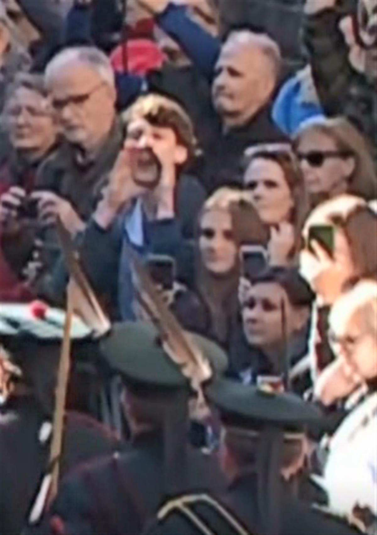 当地时间12日下午,女王灵柩来到苏格兰首府爱丁堡的皇家大道,由仪仗队护送前往圣吉尔斯大教堂,沿路有不少民众给女王送行。游行的队伍中,包括国王查尔斯三世在内的女王四个子女,都紧跟在女王的灵柩后面。这时,人群中有一名男子突然喊道:“安德鲁,你是个有病的老头。”随后,他被警方从人群中带走。