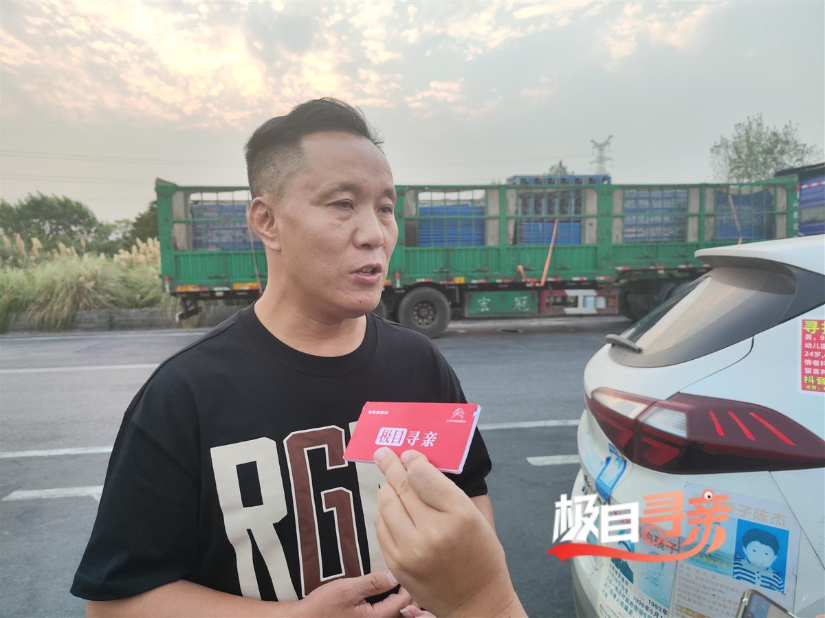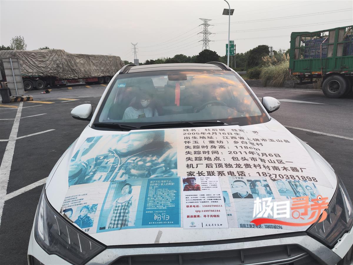 13日下午6时,在湖北荆门服务区,极目新闻记者见到了风尘仆仆的杜小华,还是那辆贴满了寻亲广告的车,还是他一个人在开。由于在河南南阳又发现了疑似小米奇的线索,他驱车北上前往南阳寻子。