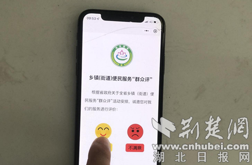 居民手机对服务进行评价。通讯员 供图