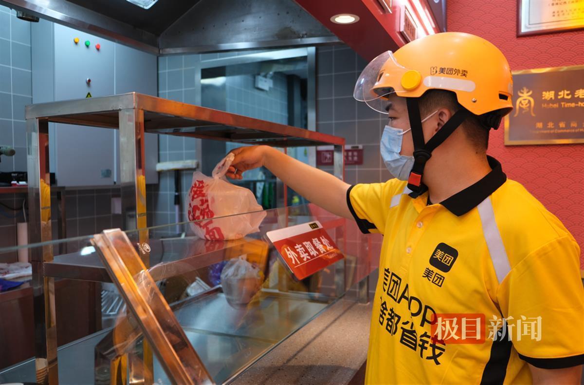 外卖骑手在蔡林记门店内取餐(通讯员郭杰 摄)