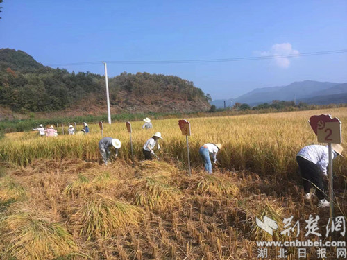 荆楚网(湖北日报网)讯(通讯员 廖作祥)“从插秧到管理到收割,几个月的农事实践成就感满满”,“第一次收割稻谷,体验到什么是粒粒皆辛苦了”。9月16日上午,京山市绿林镇政府16名年轻干部集中到该镇五台村开展收割稻谷农事实践活动,大家头顶骄阳、挥舞镰刀,争相竞技,把一扎扎金黄的稻穗平铺在田地里,等待打捆、搬运,脱粒、归仓。